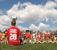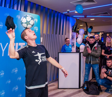 Pokaz sztuczek piłkarskich zsynchronizowany z muzyką,